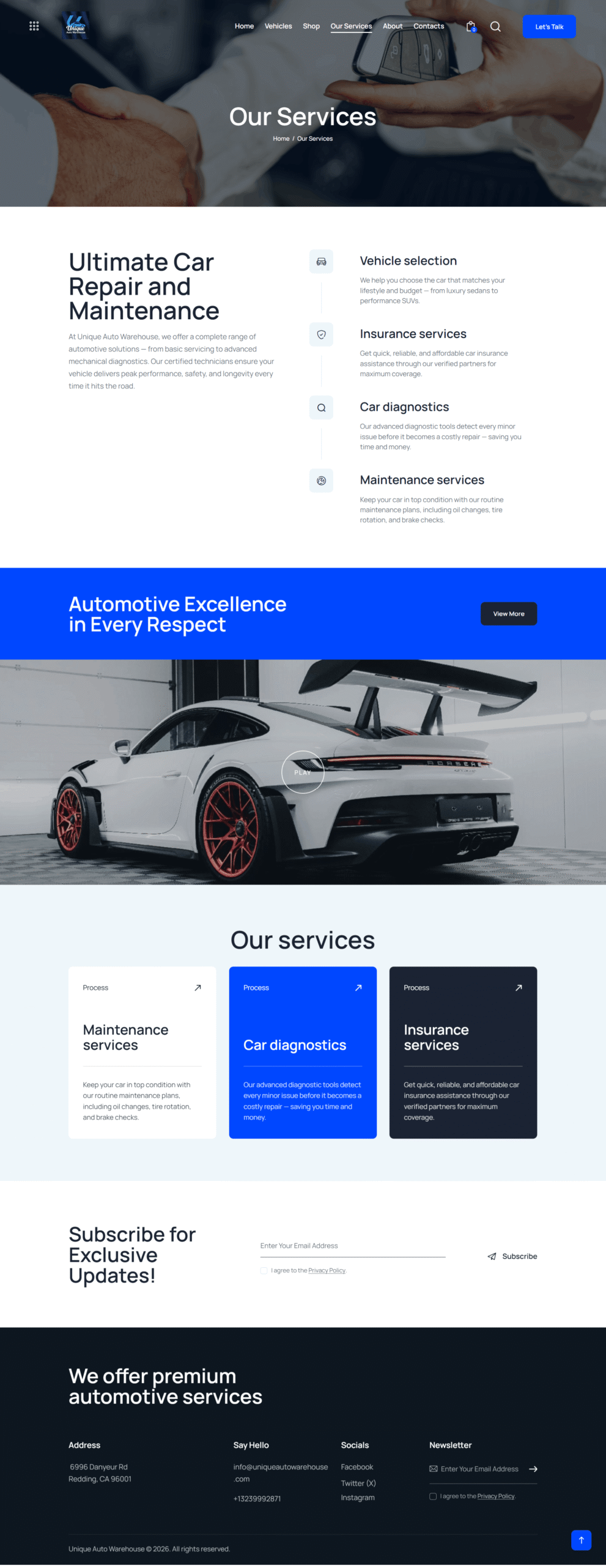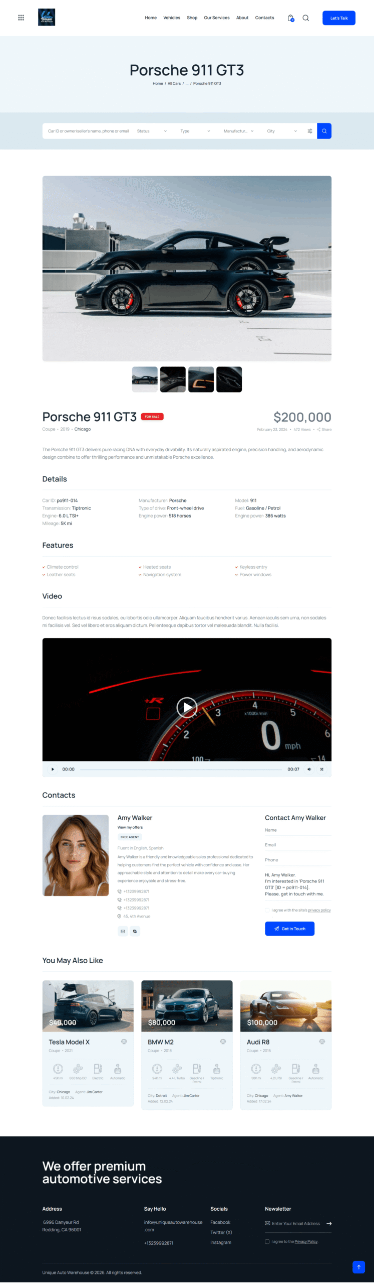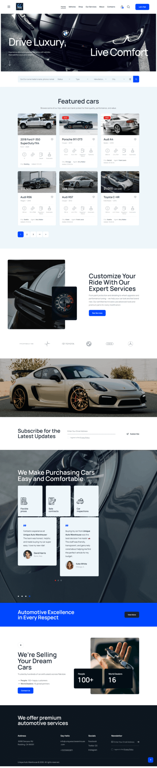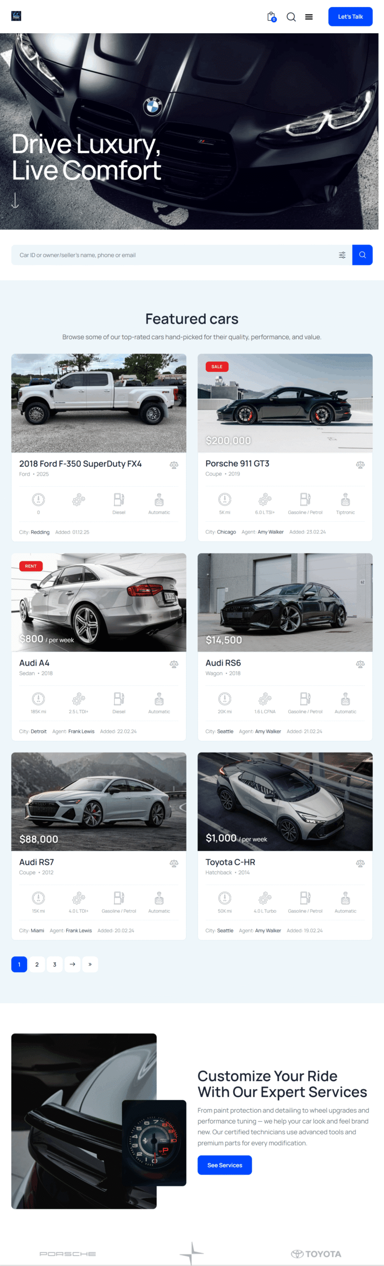 This project involved designing and developing a dynamic car dealer and vehicle listing website for an automotive platform. The goal was to create a clean, fast, and user-friendly system where users can easily browse, search, and explore vehicles with detailed specifications.